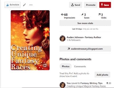 I often look at author images and think, did this person even look at, really look at, a fantasy book cover. Go on Google or Pinterest and examine other book covers or other ads. It doesn’t need to be book related. I got a poster idea from an ice cream ad.